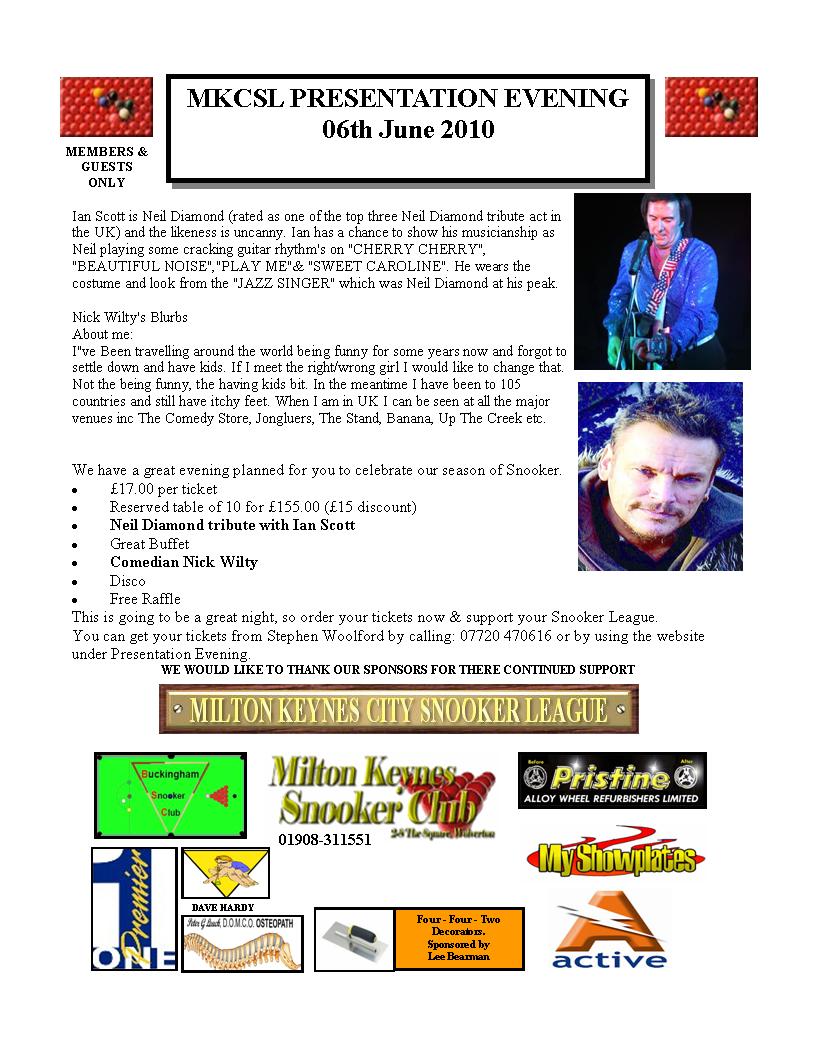 As you know Presentation Eve is approaching, tables for what should be a fantastic evening are now available! Please contact me ASAP to arrange your tickets.